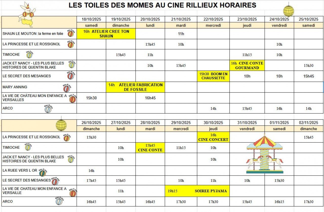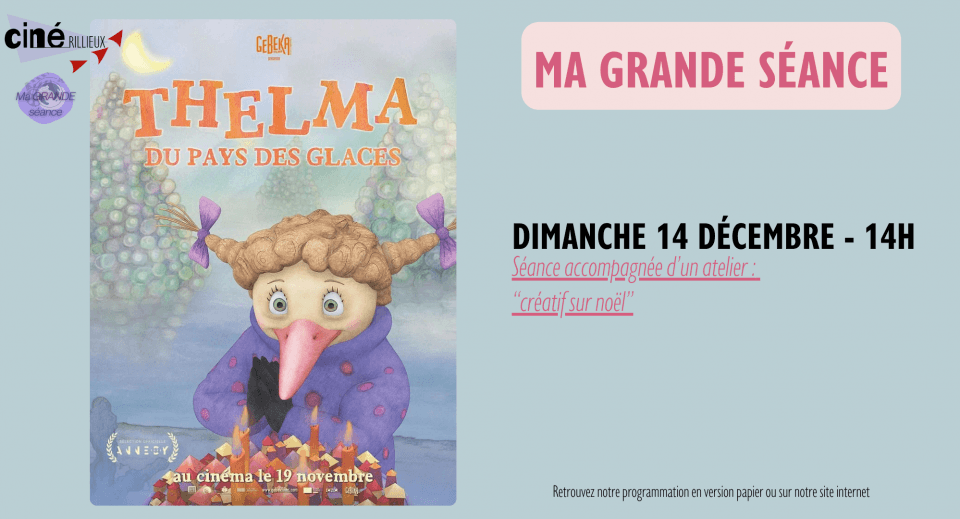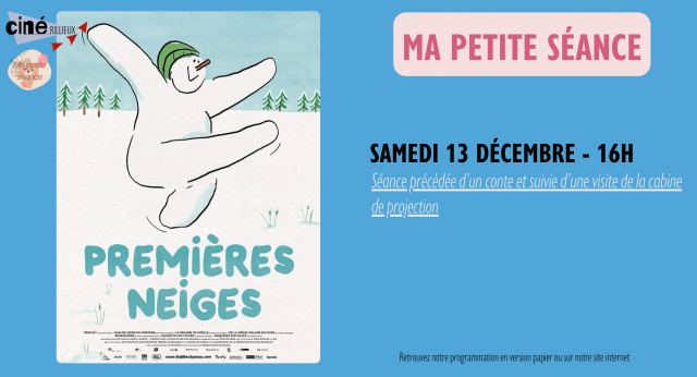 Un rendez-vous mensuel adapté pour les plus petits, de 2 à 5 ans environ (mais aussi pour les plus grands ) ! Une séance par mois accompagnée d'une présentation de la salle de cinéma et d'un atelier adapté à l'âge des enfants.