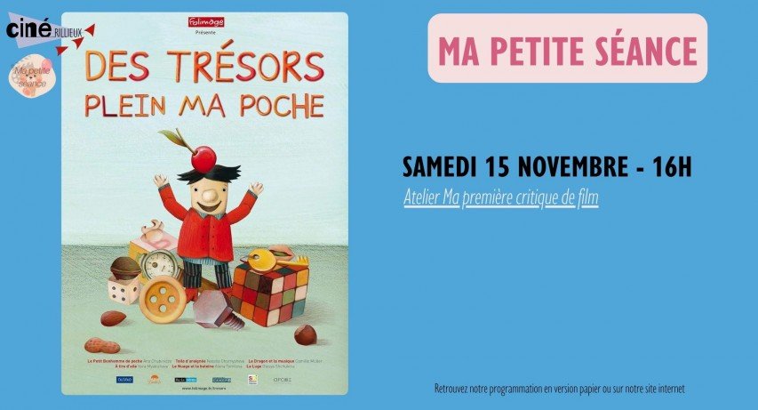 Un rendez-vous mensuel adapté pour les plus petits, de 2 à 5 ans environ (mais aussi pour les plus grands ) ! Une séance par mois accompagnée d'une présentation de la salle de cinéma et d'un atelier adapté à l'âge des enfants.